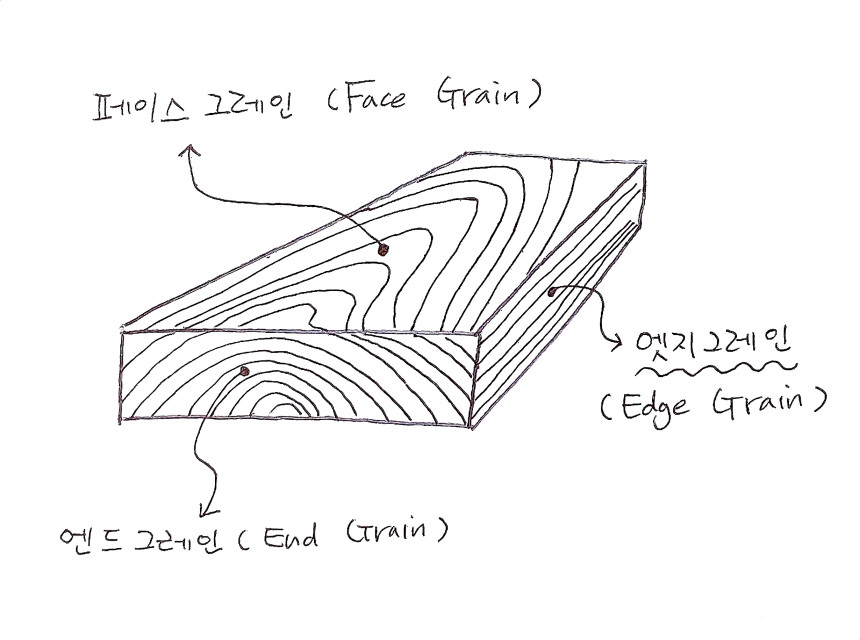 일반적인 페이스그레인 (Face Grain) 도마와 달리